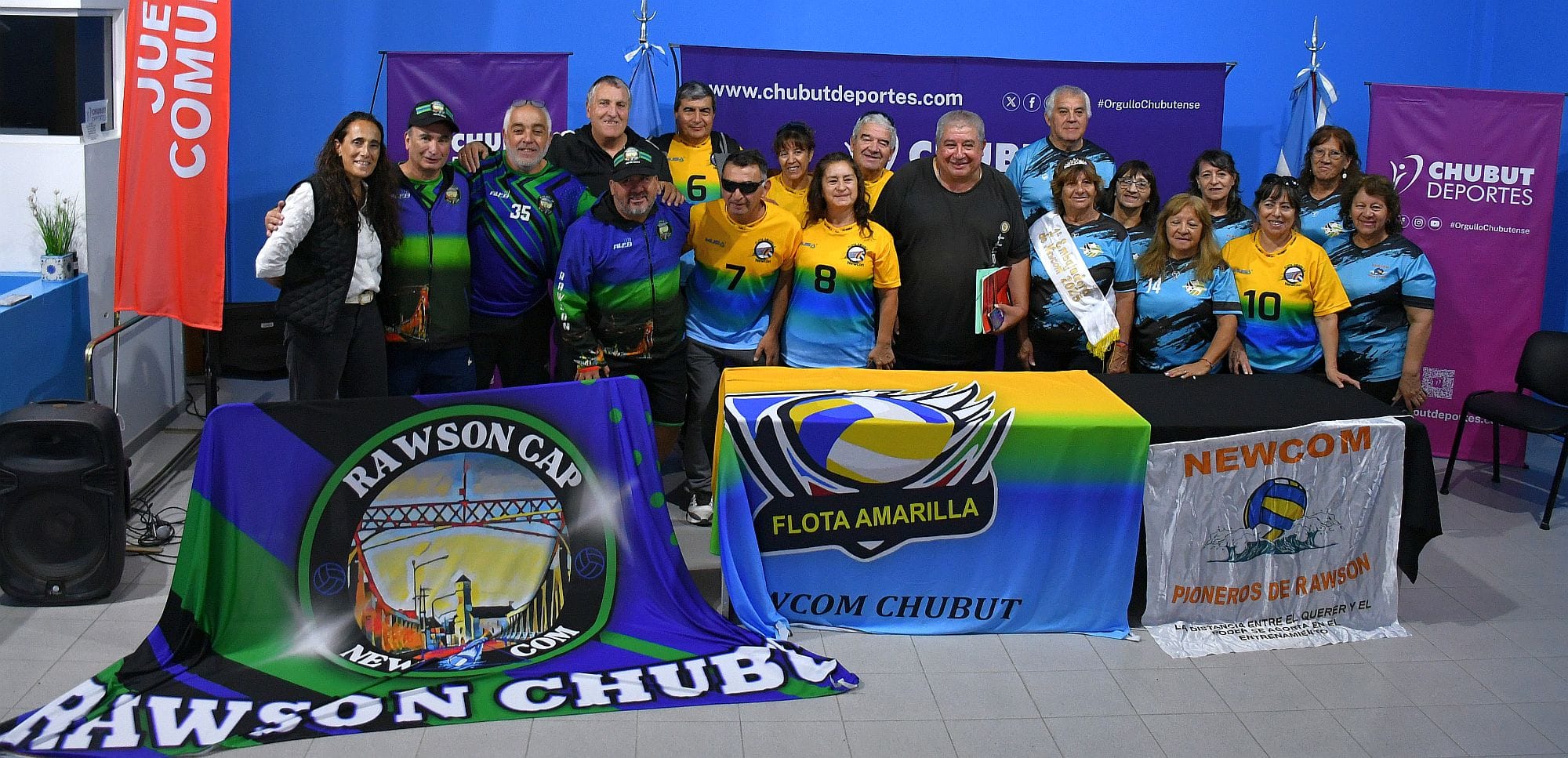 Participaron de la presentación la profesora Alejandra Ibrahim, miembro del Directorio de Chubut Deportes, el presidente de la Comisión Municipal de Newcom de José de San Martín, José Teodoro Gómez, y representantes de los equipos “Pioneros”, “Rawson Cap” y “Flota Amarilla”, de Rawson.